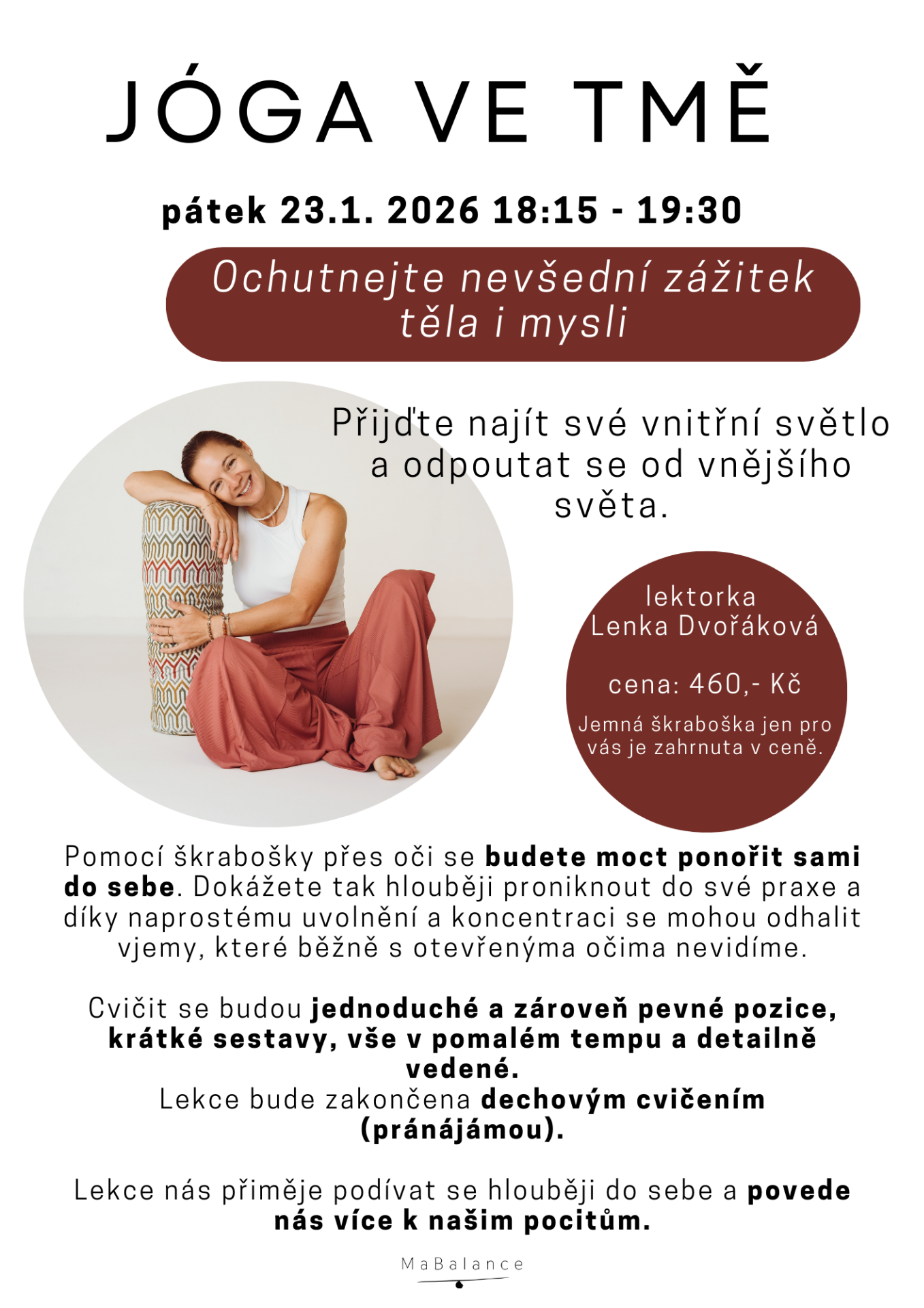 Jóga ve tmě bude o tom, co nevidíme. Tato lekce nás přiměje podívat se hlouběji do sebe a povede nás více k našim pocitům.