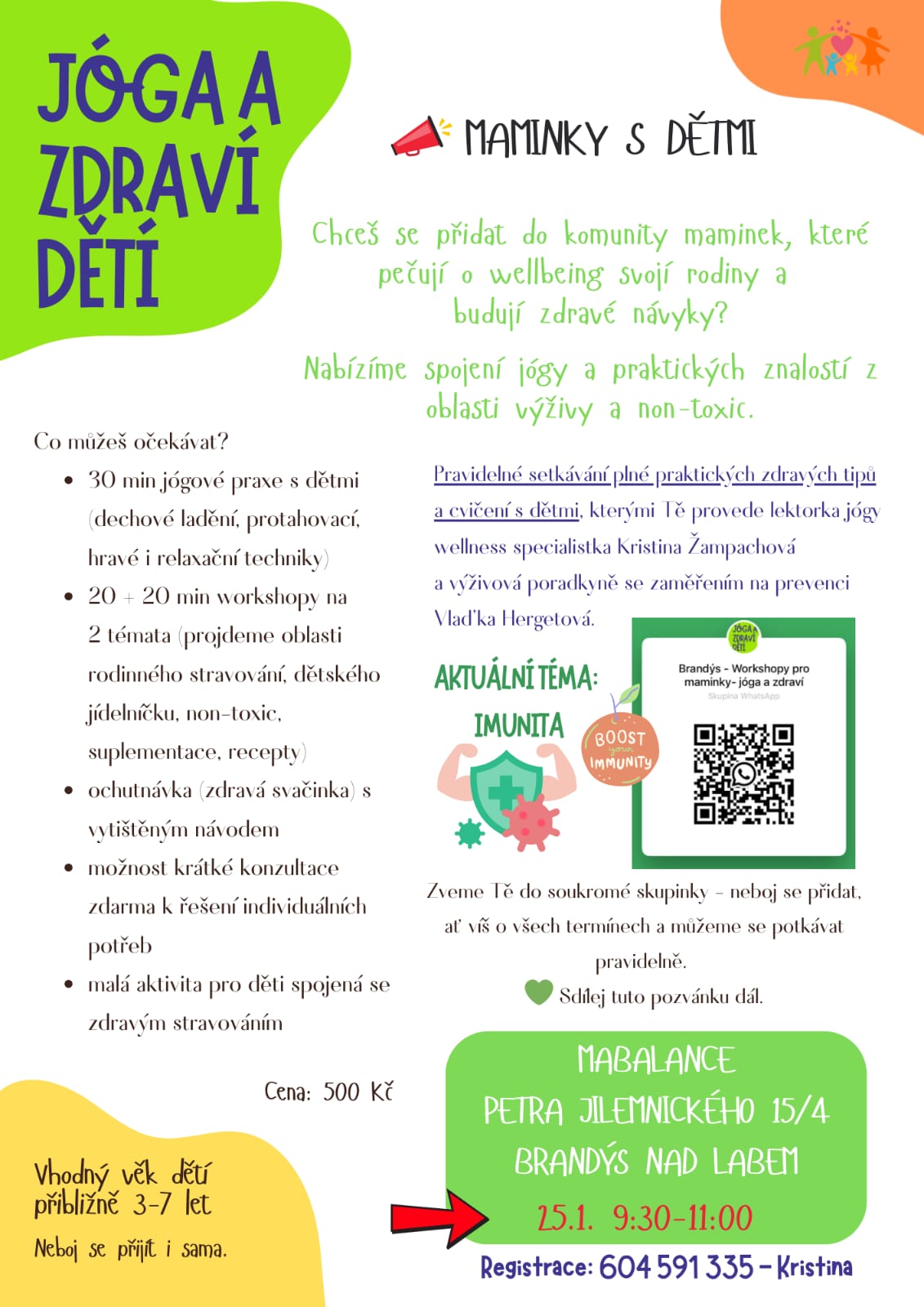 Setkání plné praktických zdravých tipů a cvičení s dětmi, kterými tě provede lektorka jógy a nutriční wellness specialistka Kristina Žampachová